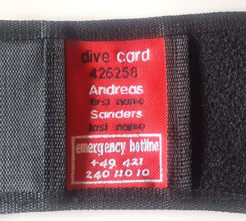 Ihre Dive-Card wird auf die Inflatormarkierung gestickt.