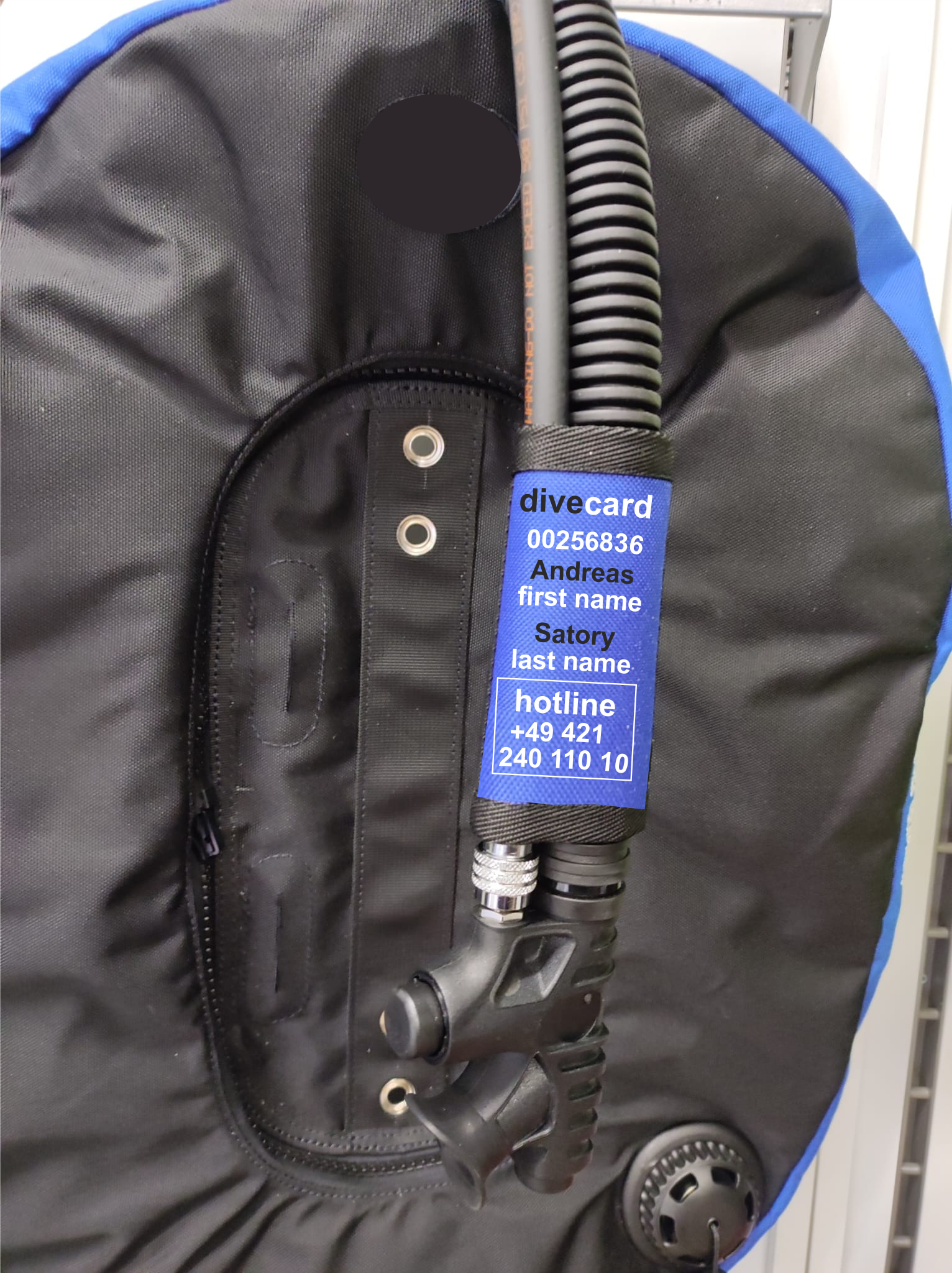 Die DIVE-CARD am Inflatorschlauch