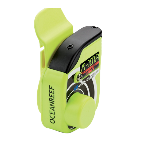 Die M-101A G.divers Einheit ist eine Nur-Empfangs-Kommunikationseinheit die auf einem Kanal arbeitet. Die M-101A passt auf konventionelle Maskenbänder und IDMs. Durch die hervorragende Lautsprecherqualität kann die Einheit auch von mehreren Tauchern geteilt werden.