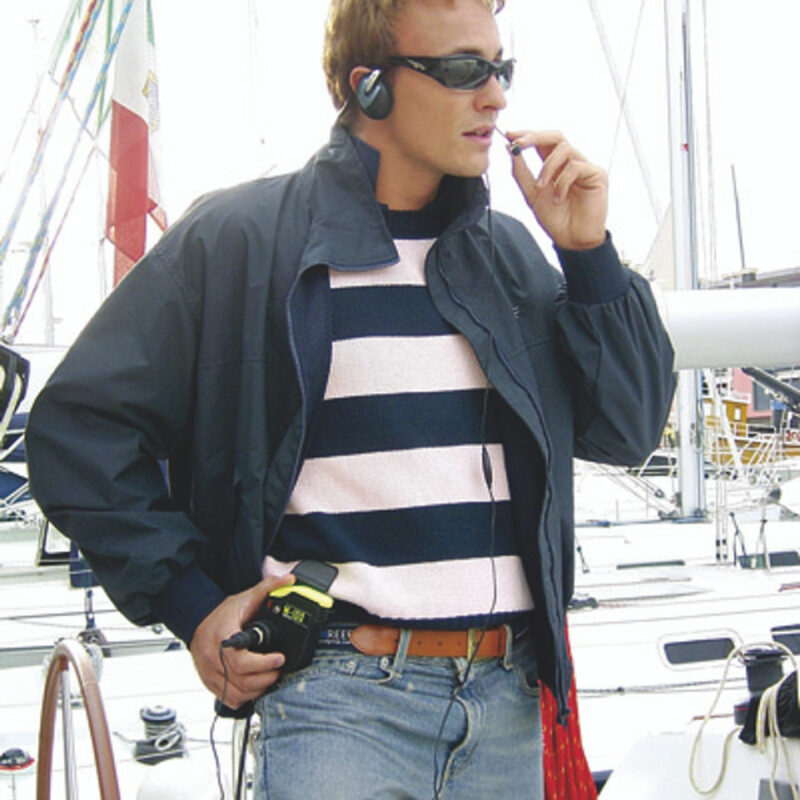 Die Haupteinheit verfügt über eine PTT-Taste (Push to Talk) und einen Kopfhörer-/Mikrofonanschluss.